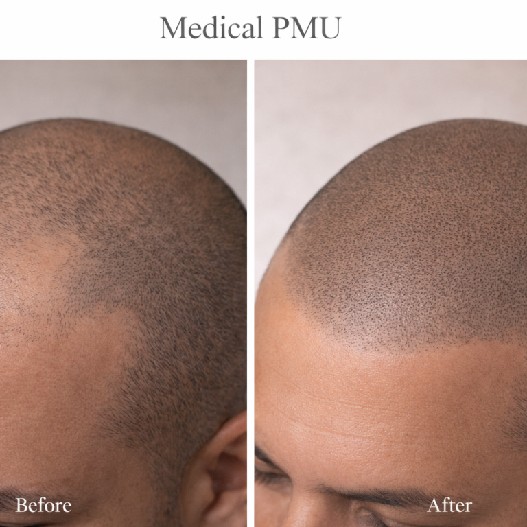 Medizinische Mikropigmentierung zur Mamillen- und Areola-Rekonstruktion nach Mastektomie sowie zur Kopfhautpigmentierung (Scalp Micropigmentation) bei Alopezie, Narbengewebe oder diffuser Haarausdünnung.